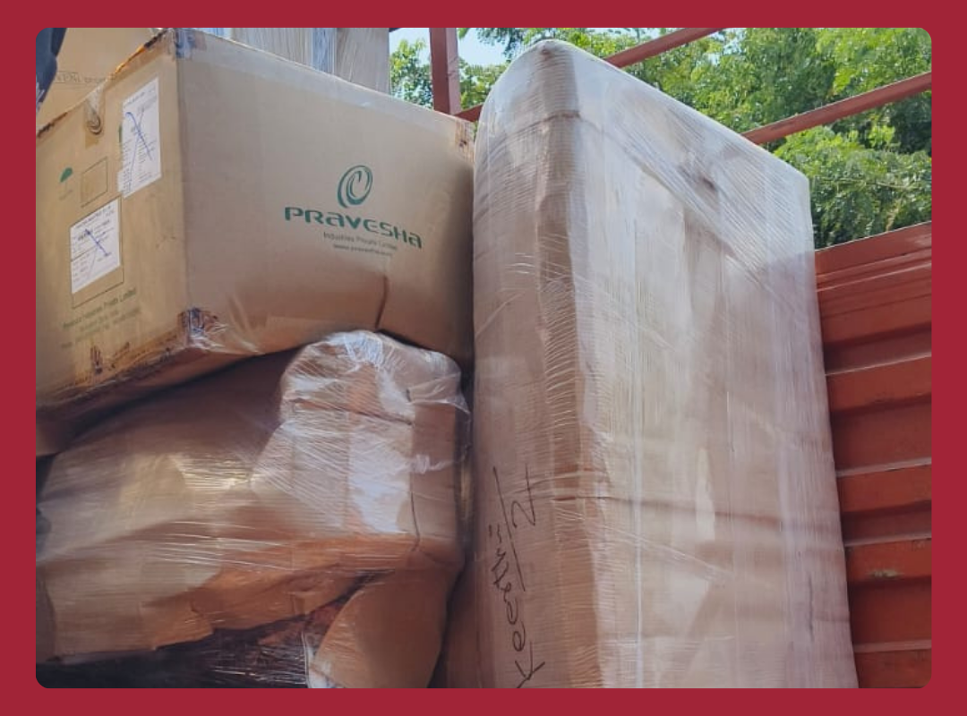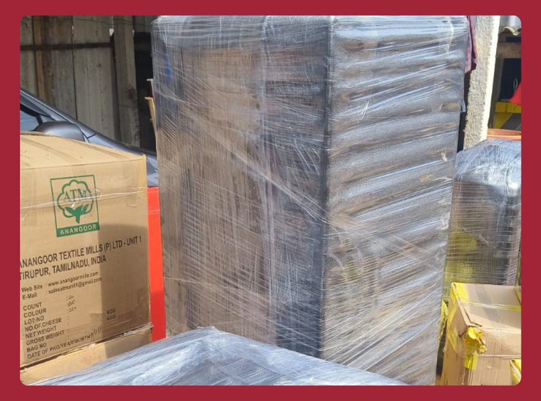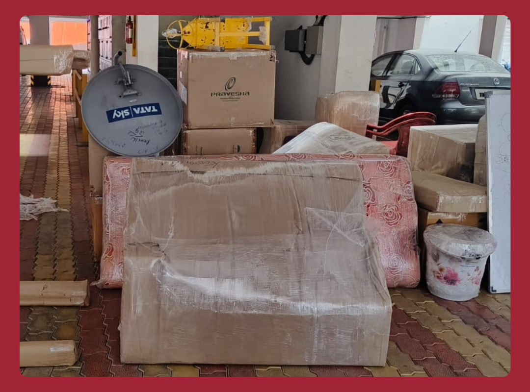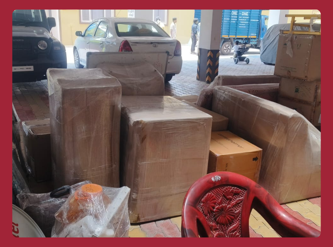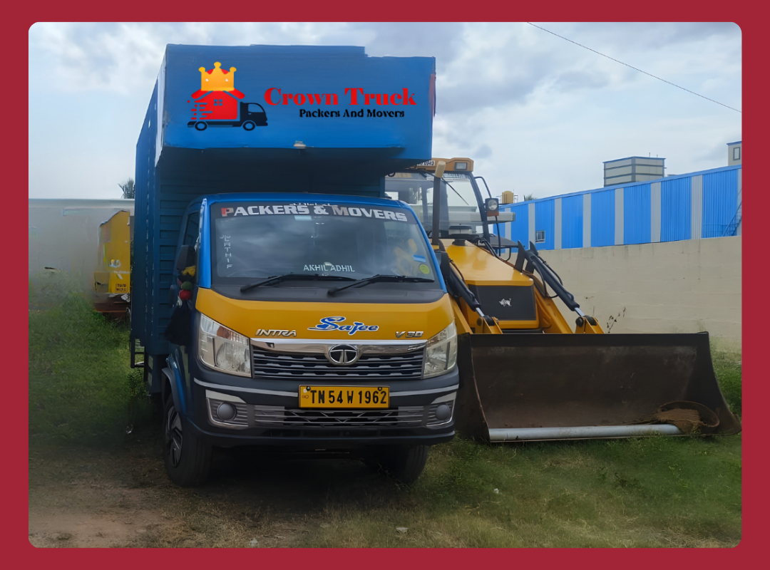 “Team of packers loading furniture and cartons into a moving truck with Crown Truck Packers and Movers branding in a residential street.”